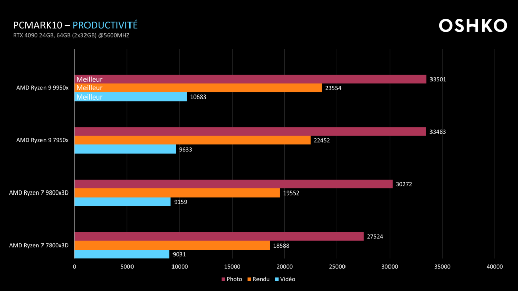 De leur côté, le 9950X et le 7950x brillent par leur puissance de calcul et leur capacité à gérer des charges de travail intensives, répondant parfaitement aux attentes des créateurs de contenu et des professionnels.