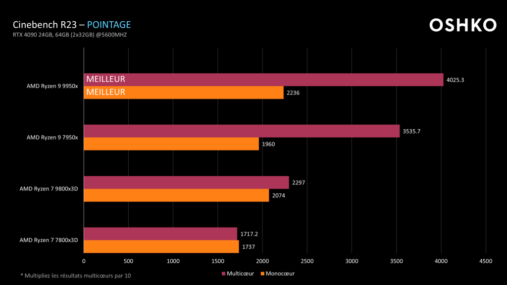– 9950x vs 7800x3D : 53 % plus rapide.