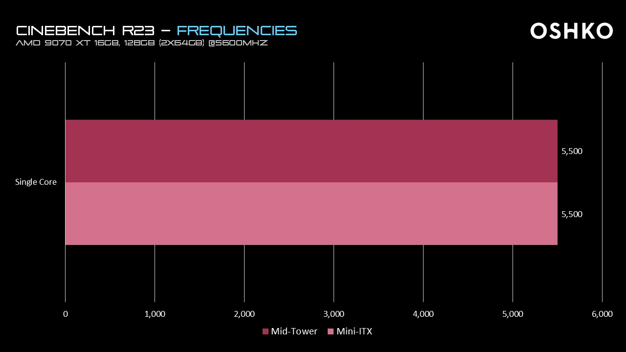 Multi-cœur : le système tour moyenne a maintenu 4 600 MHz, contre 4 500 MHz pour le Mini-ITX, soit une baisse de 2,17 %.
