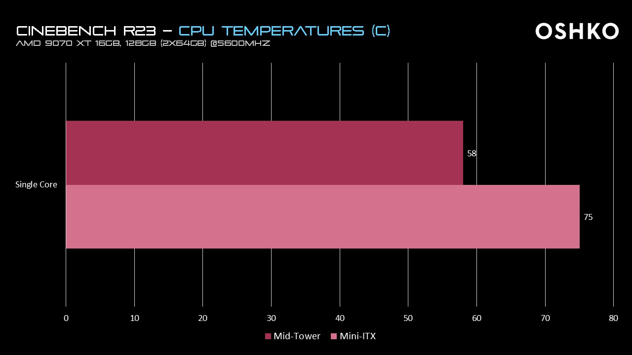 Mono-cœur : le système tour moyenne s’est stabilisé à 58 °C, tandis que le Mini-ITX a atteint 75 °C, soit 29,31 % de plus.