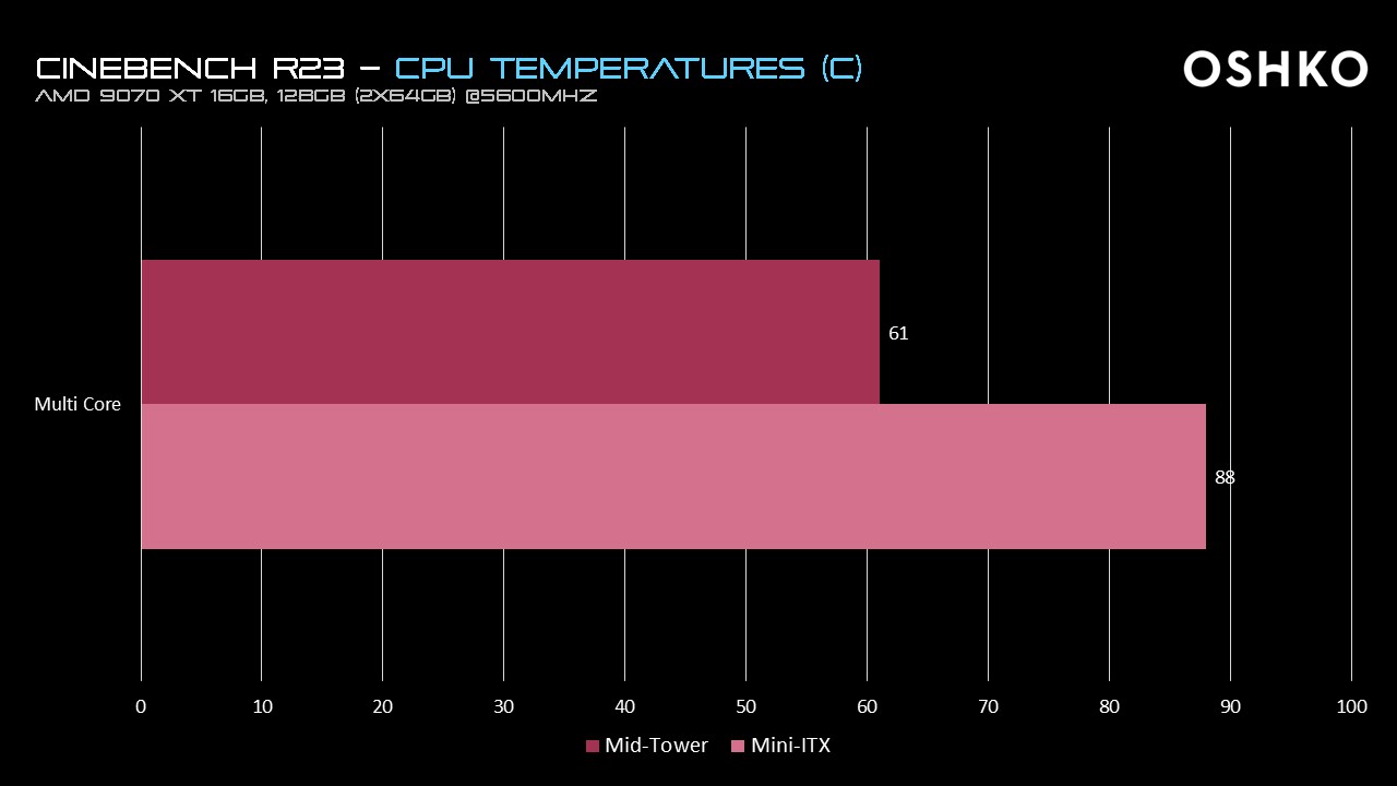 Multi-cœur : le système tour moyenne a enregistré 61 °C, contre 88 °C pour le Mini-ITX, soit 44,26 % de plus.