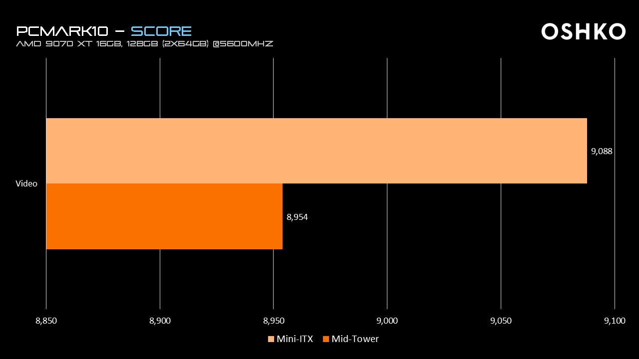 Vidéo : le système tour moyenne a enregistré 8 954 points, tandis que le système Mini-ITX a atteint 9 088 points, soit une hausse de 1,50 % par rapport a la tour moyenne.