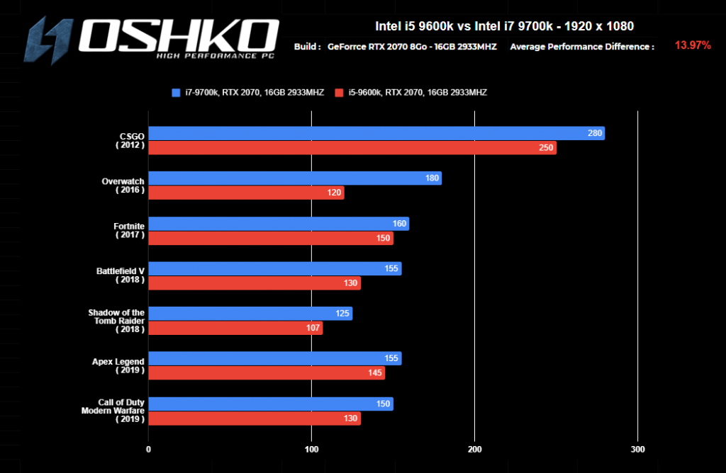 When it comes to gaming, a lot of people look at the graphic cards and overlook the CPU. However, your CPU does impact performance, but how much ? This is what we decide to look at today, answering the eternal question : I5 or I7 ? Using a Intel i5 9600k and a Intel i7 9700k, without overclocking and using the exact same graphic card, we threw them against popular games.
