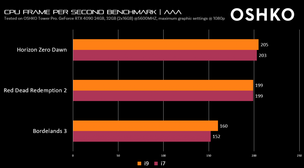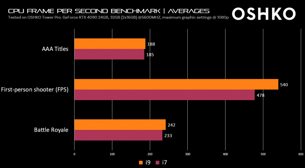 The least impacted were the AAA titles with a small 2% improvement, going from 185 FPS with the i7 to 188 FPS with the i9.