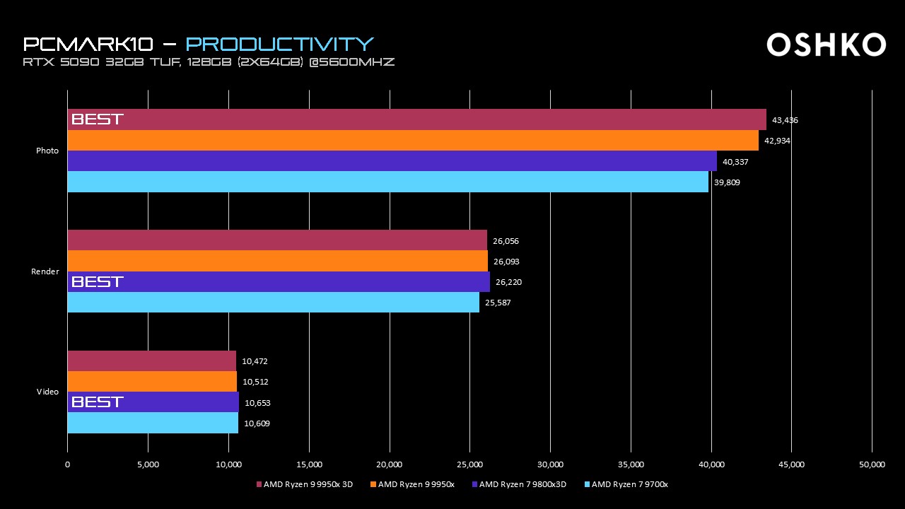 After evaluating the Ryzen 9700X, 9800X3D, 9950X and 9950X3D across productivity focused benchmarks, the verdict is clear: the Ryzen 9 lineup, especially the 9950X3D, stands out in demanding tasks such as 3D rendering and file compression. If your workflow regularly involves these intensive applications, investing in a Ryzen 9, particularly the 9950X3D, is fully justified by its significant performance gains.